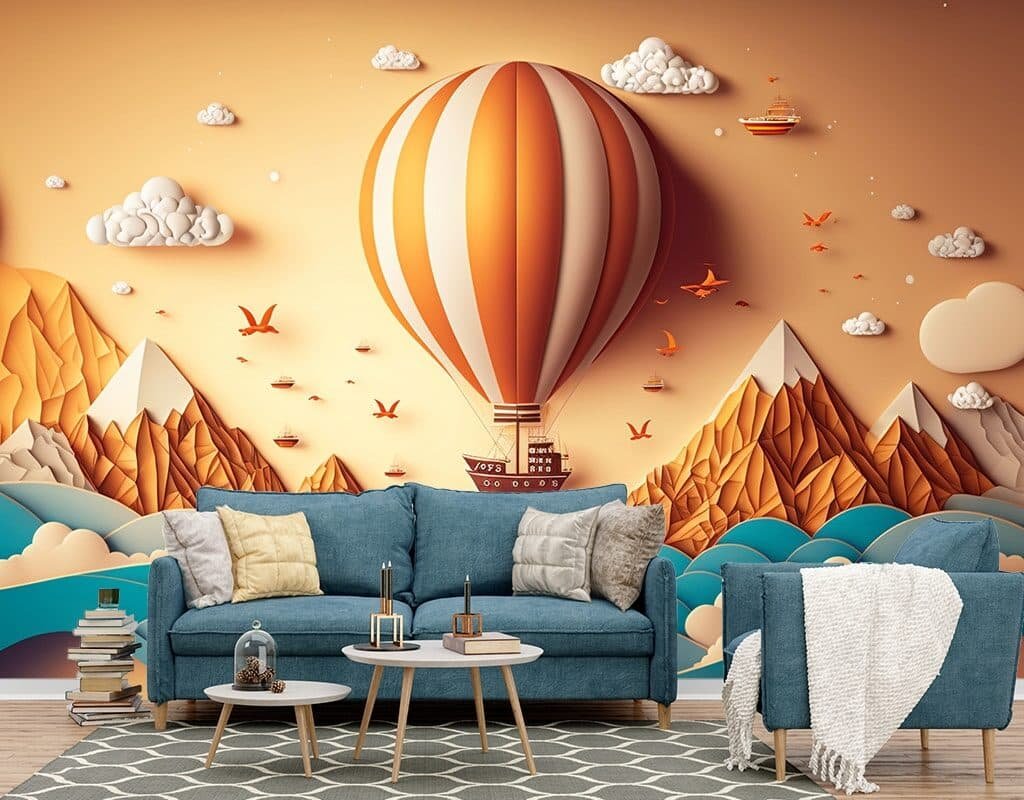 3D Hot Air Balloon Scenery Wallpaper for Kids Room
