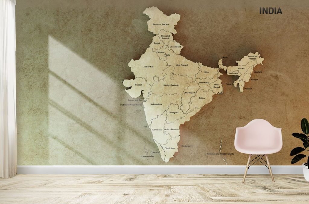 Enhance your personal or professional space with our 3D India Map Wallpaper for Wall and experience a unique way to showcase your love for geography and culture!