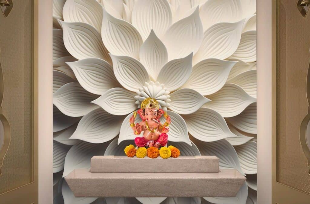 3D Serene White Flower Wallpaper for Pooja Room - Yas unique wallpaper wallpaperuniqueyas.com