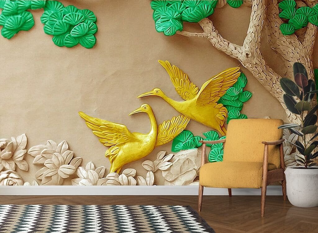 A wall with birds and flowers 3D wallpaper for wall