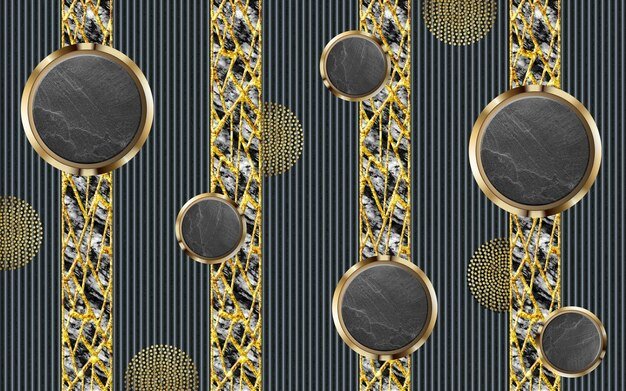 Abstract 3D wallpaper art golden decorative-black marble lines dark