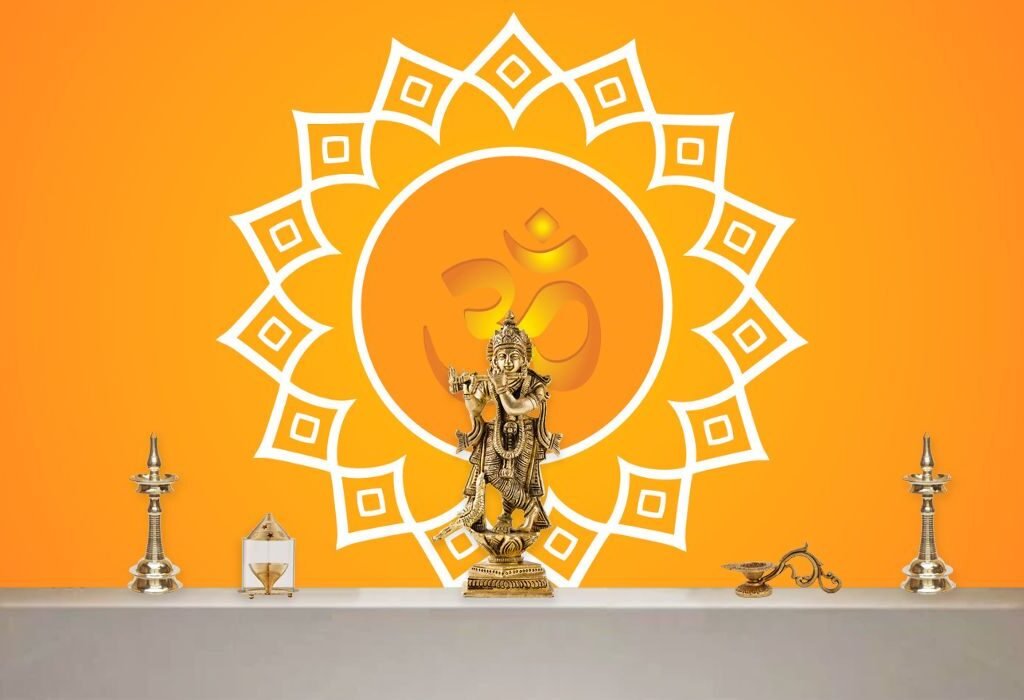 Installing this wallpaper is a breeze, thanks to its user-friendly design. Its versatile look complements a variety of decor styles, be it traditional, modern, or minimalist. Whether you’re setting up a new pooja room or enhancing an existing one, the Glowing OM Wallpaper promises to be the perfect finishing touch.