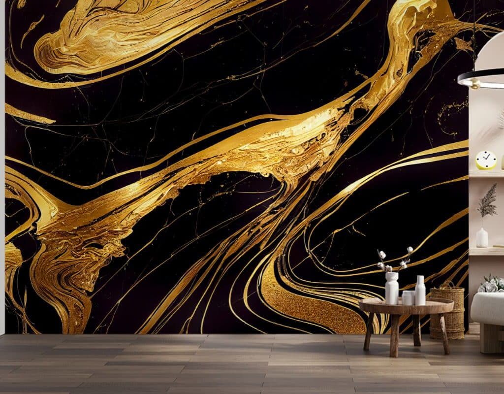 Black Beauty Gold Marble Texture Mural Wallpaper