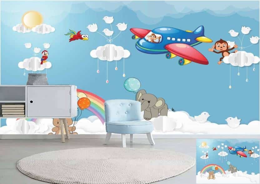 Blue nursery 3D wallpaper