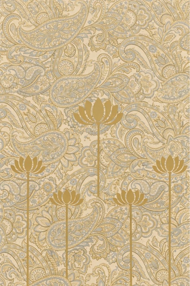 Golden Lotus & Paisley Wallpaper for Home Mandir – Spiritual Wall Decor