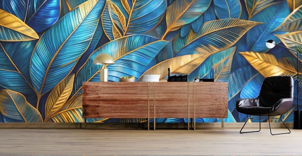 Grunge-Style Bluish Gold Wallpaper Mural - Yas unique wallpaper wallpaperuniqueyas.com