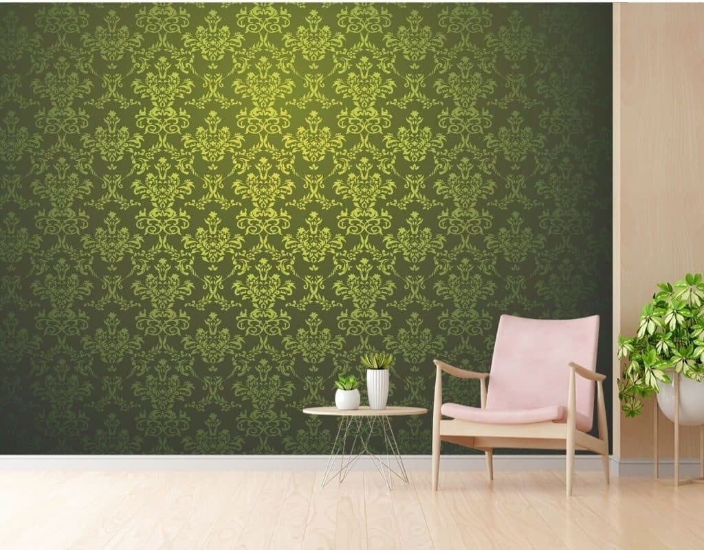 Light and Dark Green European Style Retro Damask Wallpaper for Walls
