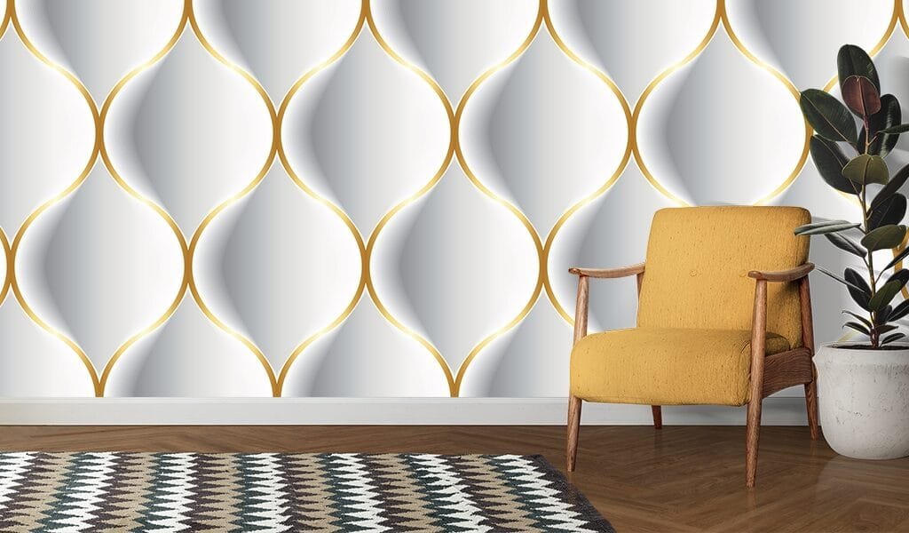 Luxurious Serene White and Gold Geometric Pattern Wallpaper - Yas unique wallpaper wallpaperuniqueyas.com