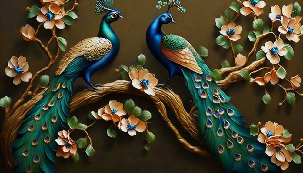 Featuring intricately detailed peacocks amidst vibrant colors and lush backgrounds, this mural creates a truly immersive experience. The high-definition design ensures every feather and detail is brought to life, turning your walls into a masterpiece.