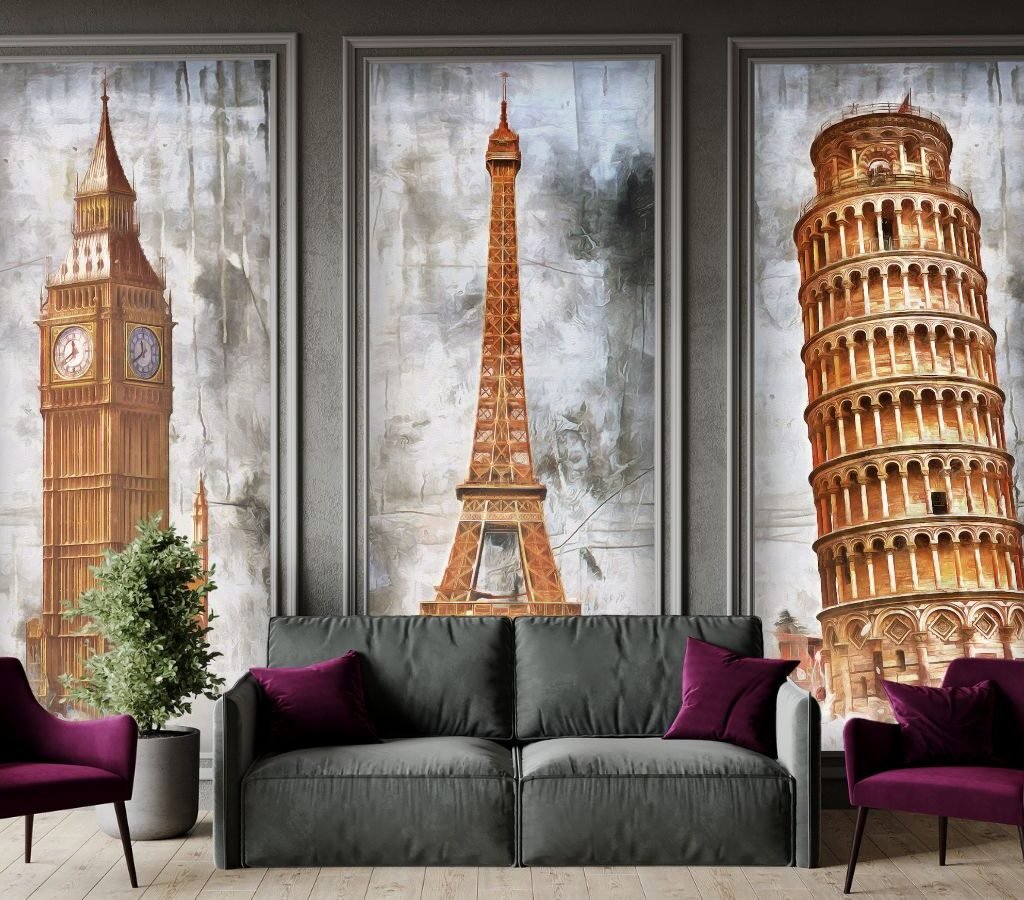 Pisa London Paris Monuments Painting Wallpaper for Wall Frame