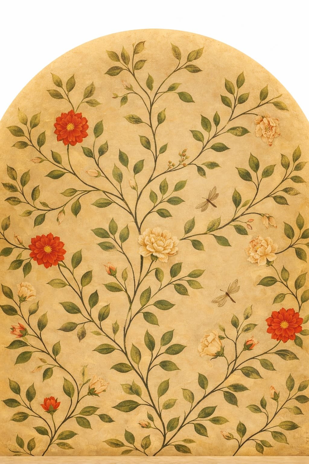 Premium 3D Pooja Room Wallpaper - Golden Arch & Flora wallpaperuniqueyas.com