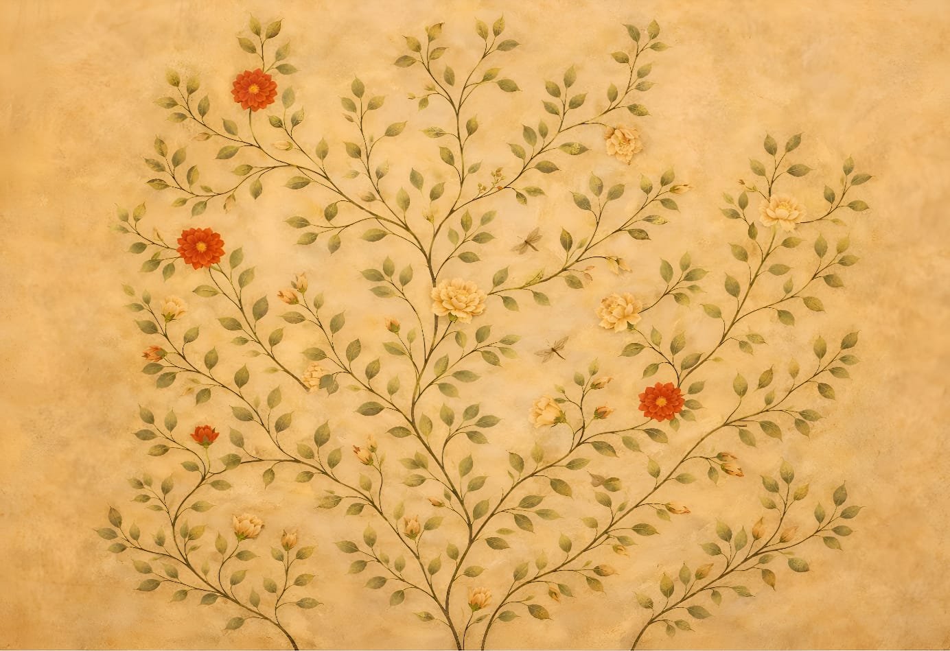 • Divine Floral Art: Background mein soft golden aur green floral vines (bel) hain jo ise ek shant aur traditional look dete hain.